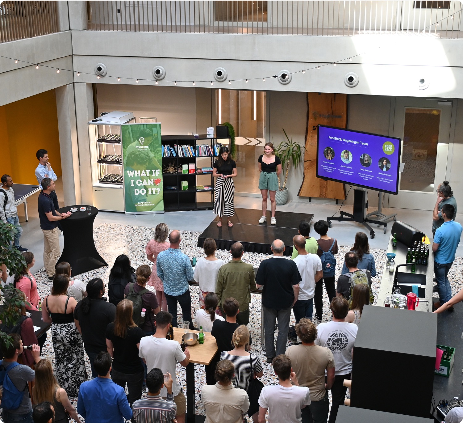 At Starthub Wageningen, we are a vibrant community where students, scientists, and alumni of Wageningen University & Research come together to turn entrepreneurial ideas into real-world impact. Through shared access to specialised resources, facilities, funding, networks, and expertise, an environment is created where ideas flourish and collaborations thrive. Come and be inspired by the energy, creativity, and ambition that drive our community of entrepreneurial changemakers.